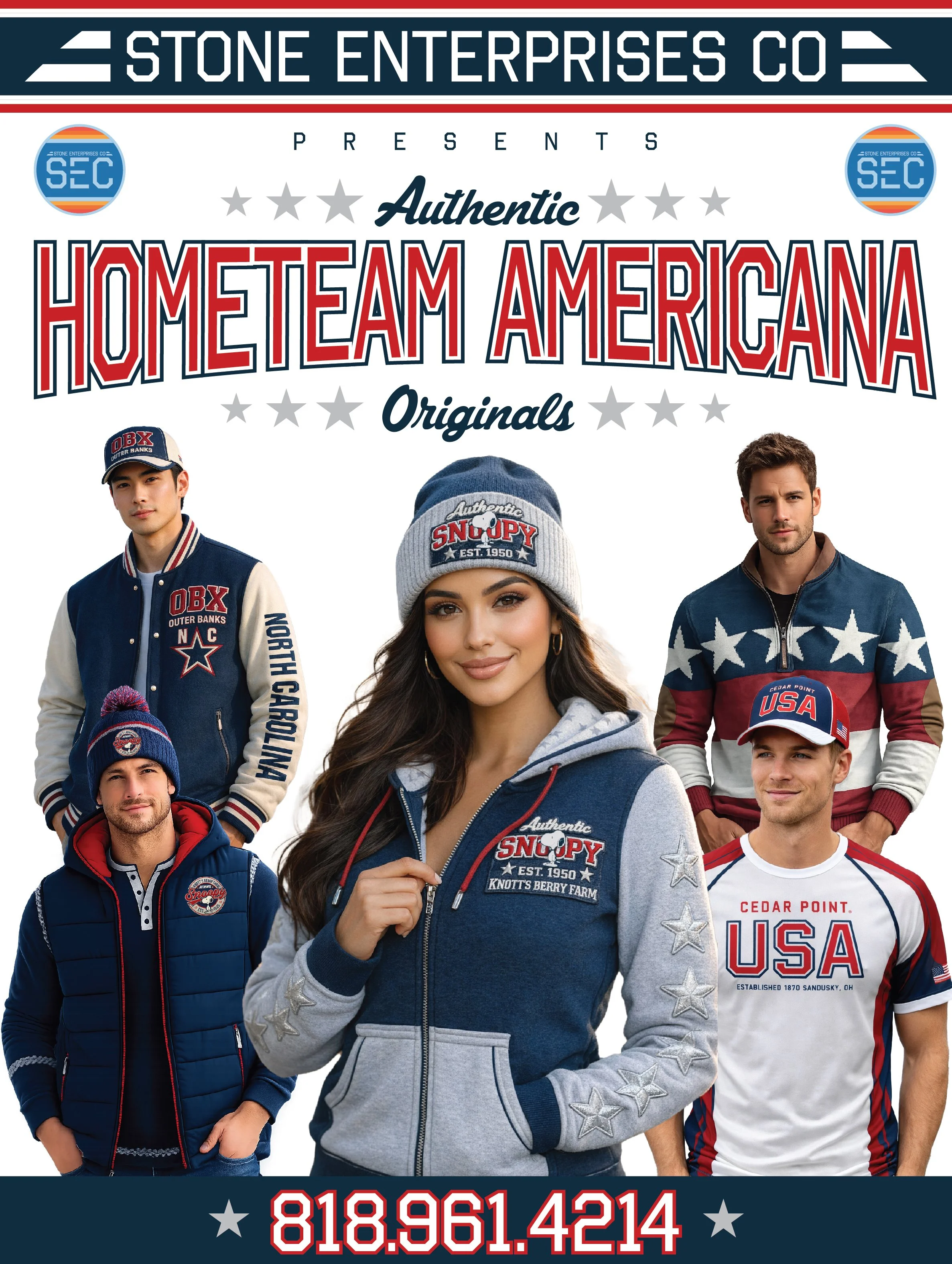 Stone Enterprises Co. (SEC) designs one-of-a-kind, custom cut-and-sewn apparel and headwear, while also serving as a full-service brokerage specializing in domestic curated collections of apparel, headwear, drinkware, and souvenirs.